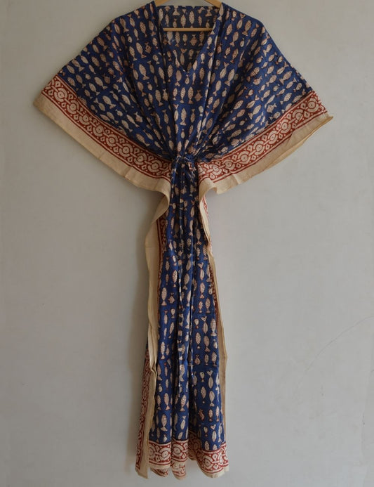 Blue Fish Soft Cotton Beach Coverup Comfy Maternity Summer Caftan