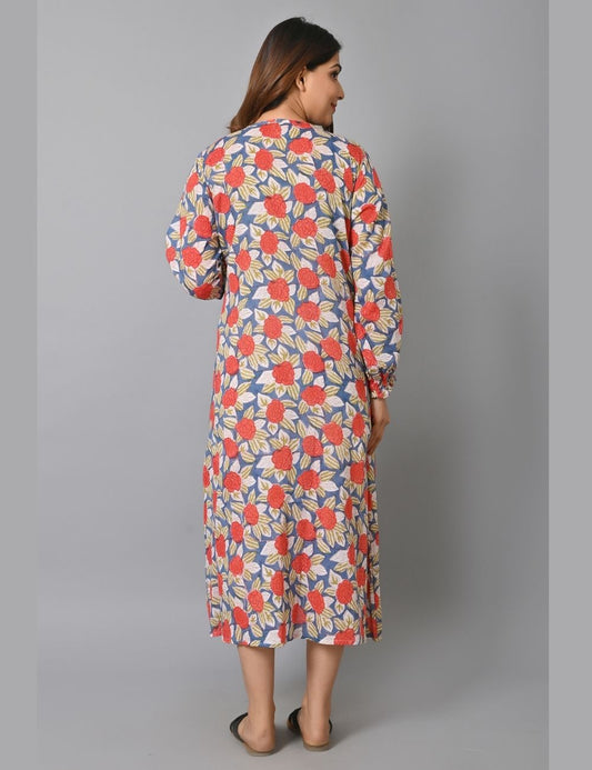 Multicolor Floral Printed Bohemian Party Wear Dress