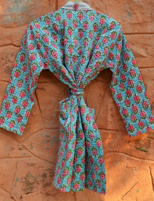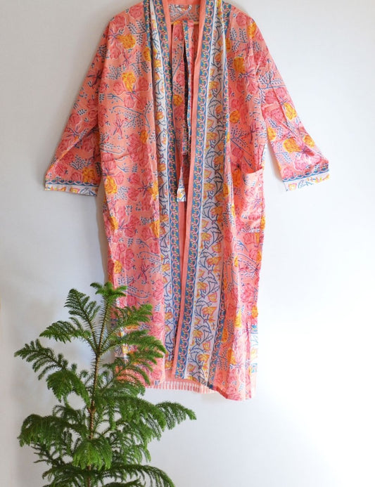 Cotton Bathrobes Pink Beautiful Summer Ethnic Robe