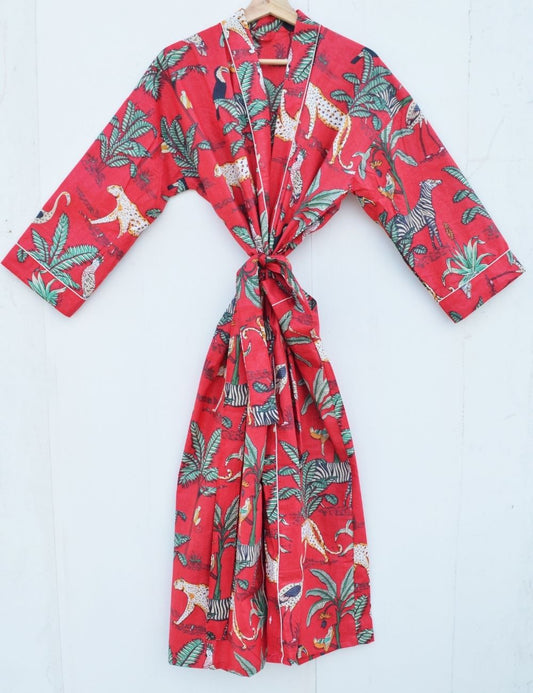 Red Animal Print Pure Cotton Sleepwear Longewear Kimono