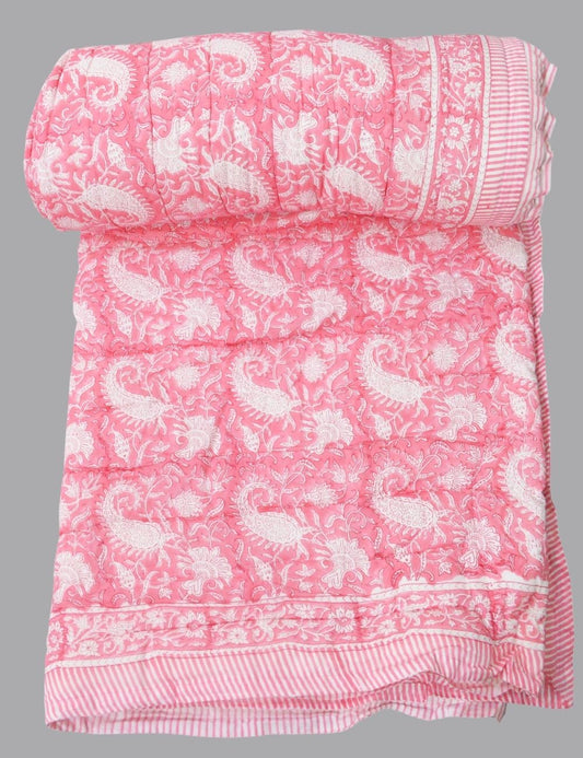 Paisely Print Pink Beautiful Indian Cotton Quilt For Winter Warm Blanket
