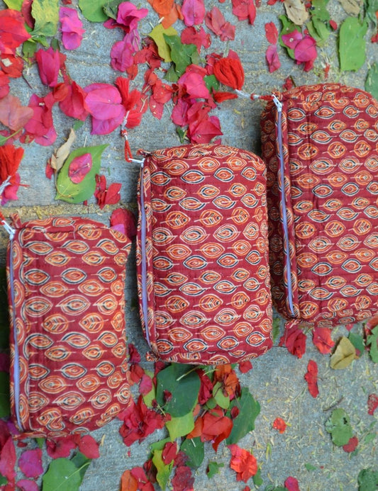 Cotton Toiletry Storage Bag Set of 3 Pieces Indian Handmade