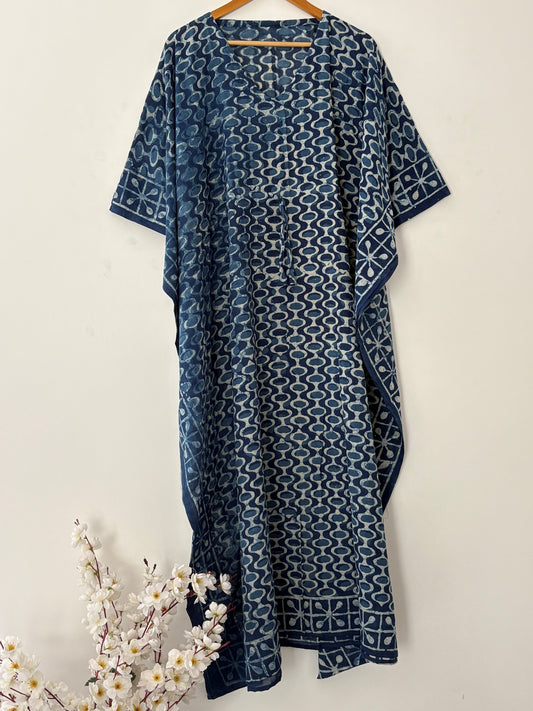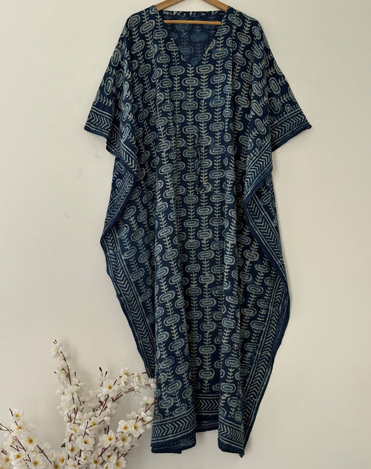 Indigo Hand Block Bagru Cotton Kaftan Beautiful Party Wear Bohemian Cotton Summer Kaftan Dress Women Maternity Robe