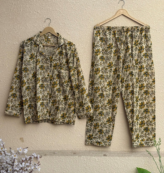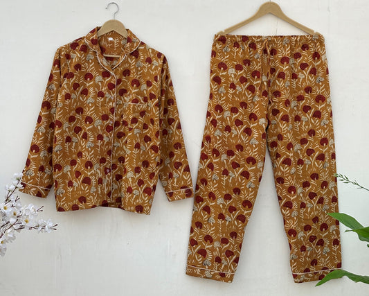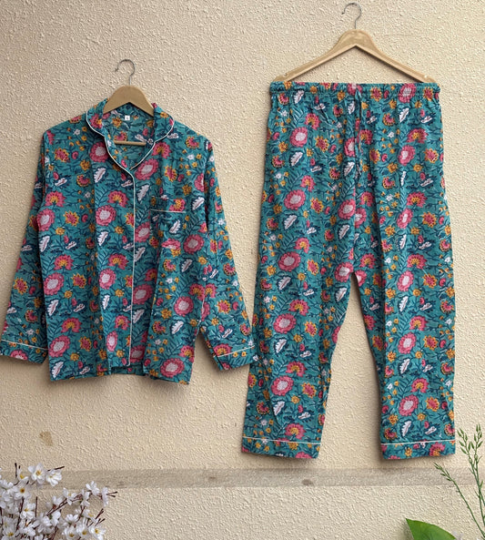 Luxury Indian Jaipur Blockprint Soft Cotton Floral Summer Pyjama Sleep Set
