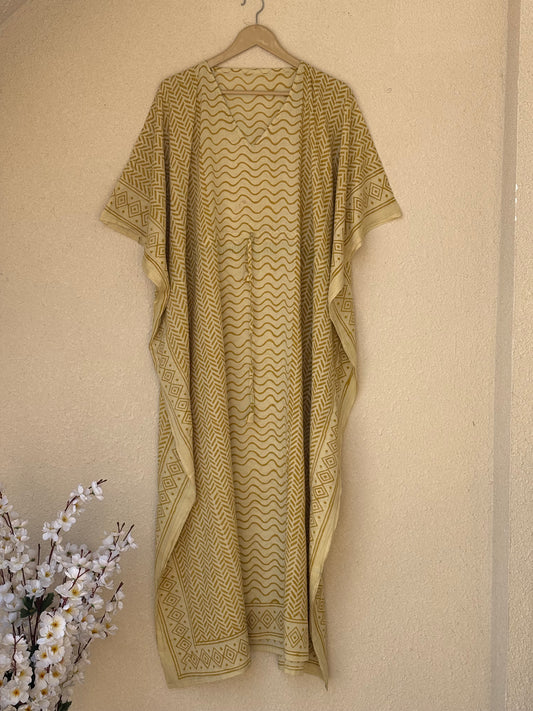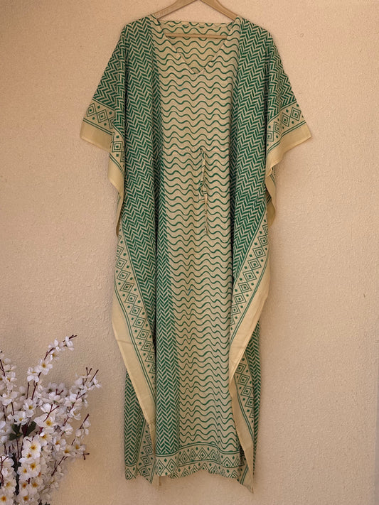 Indian Handmade Bagru Light Weight Cotton Kaftan Beach Wear Bikini Cover Up Long & Short Kaftan Night Maxi Gown
