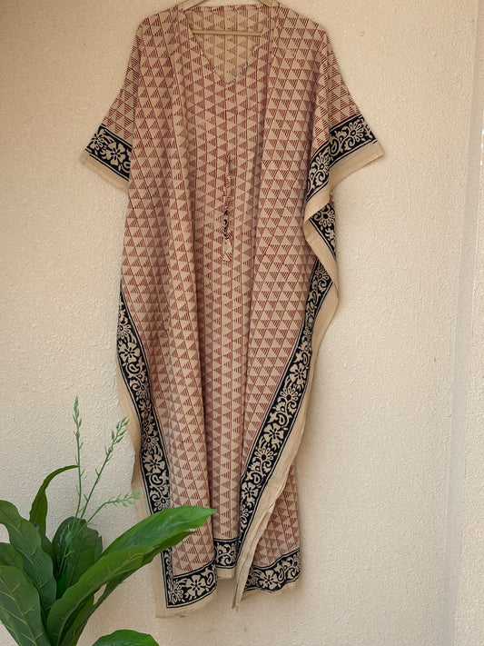 Cotton Hand Block Bagru Printed Cotton Kaftan Summer Wear Night Comforter Maxi Gown For Long & Short
