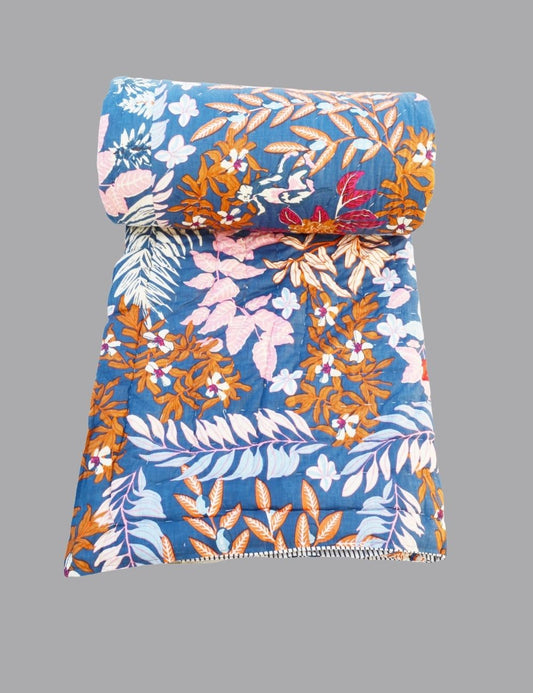 Screen Print Cotton Kantha Quilt Open Coat Short Jacket