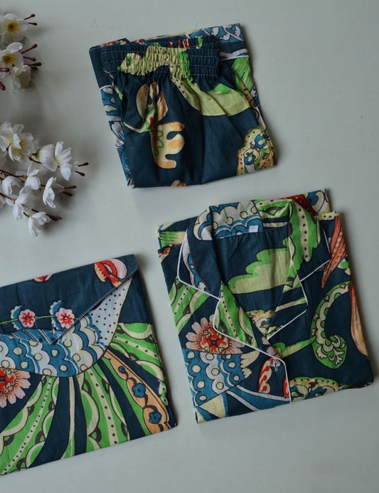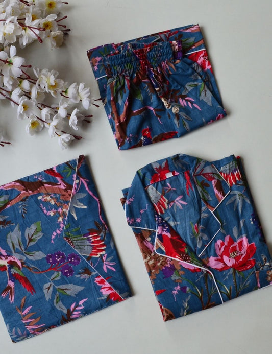 Bird Printed Blue Sleepwear Night Suit
