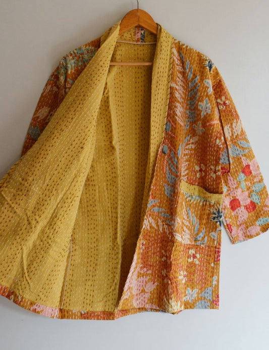 Quilted Kantha Jacket Vintage Style Boho Coat
