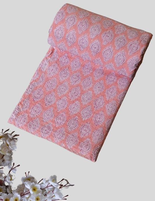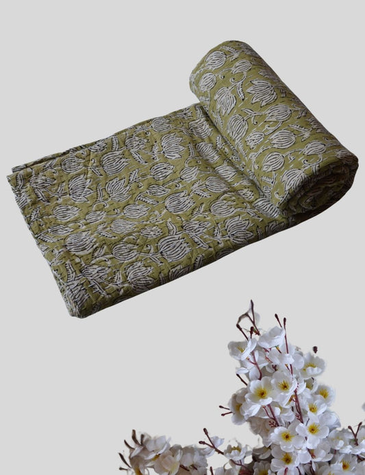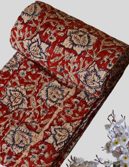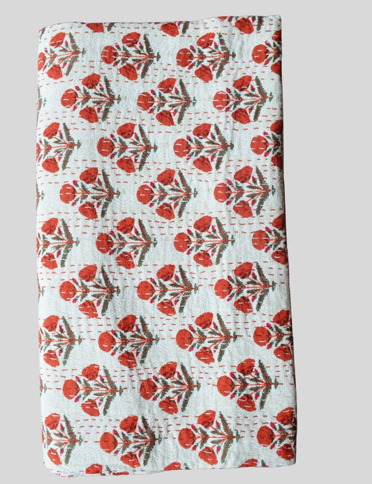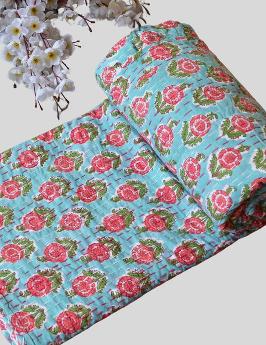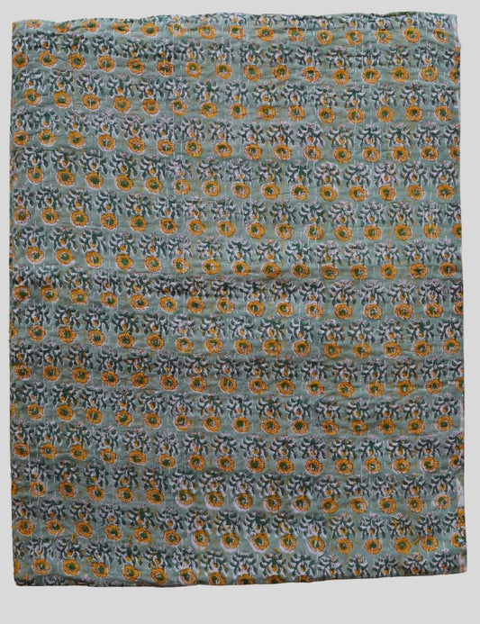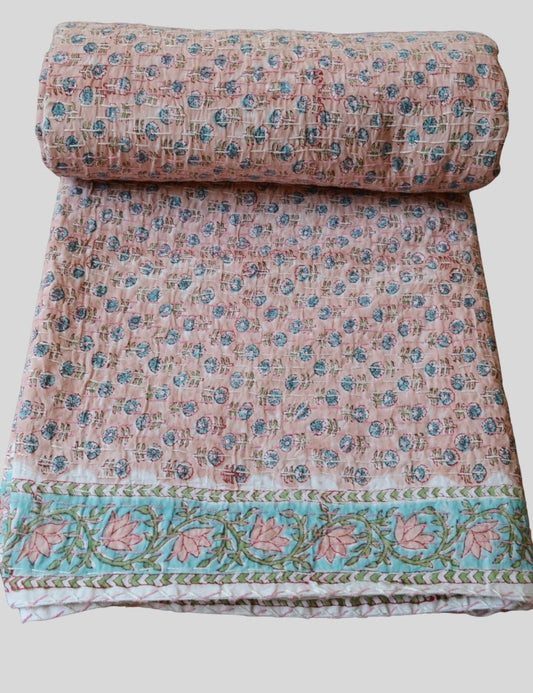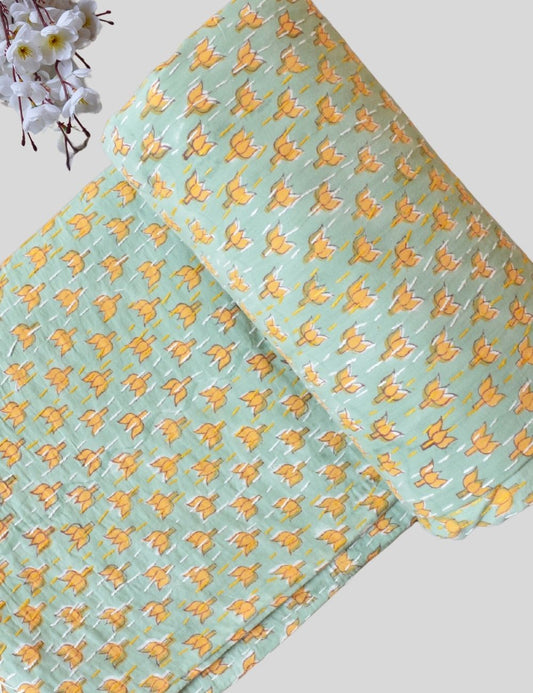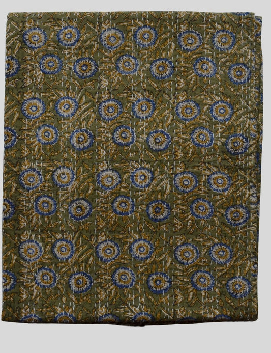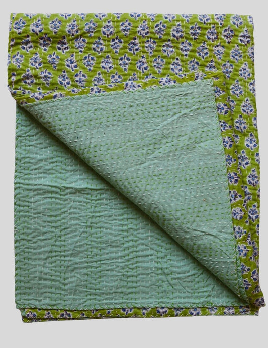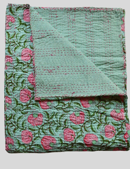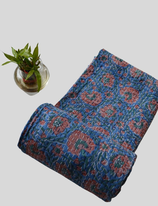 Cotton Kantha Quilt Jaipuri Block Print Fabric Reversibel Blanket