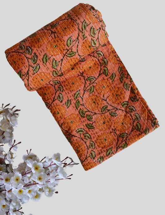 Hand Block Print Bohemian Cotton Kantha Quilt For All Season