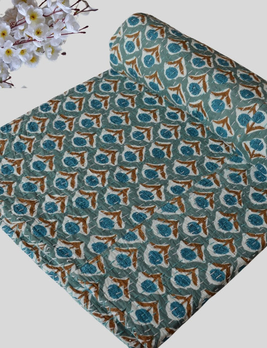 Winter Warm Cotton Quilt Ethnic Hand Block Print Bed Coverlet Bedspread