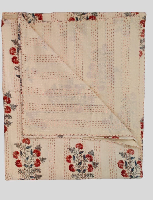 Kantha Stitch Pure Cotton Reversible Bed/Sofa Throw Kantha Quilt