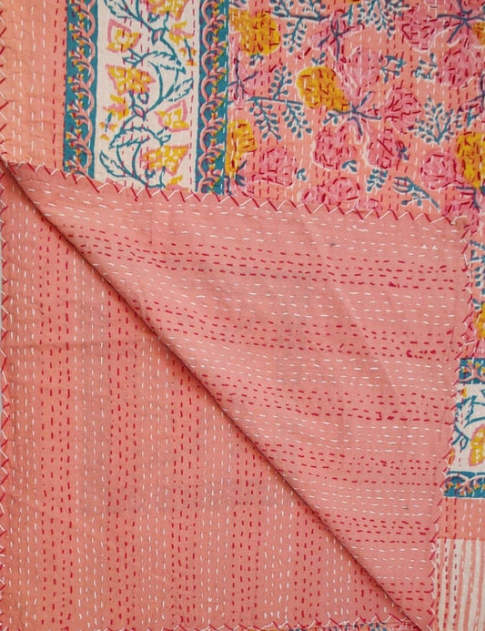 Beautiful Pink Organic Cotton Kantha Quilt Ac Soft Blanket
