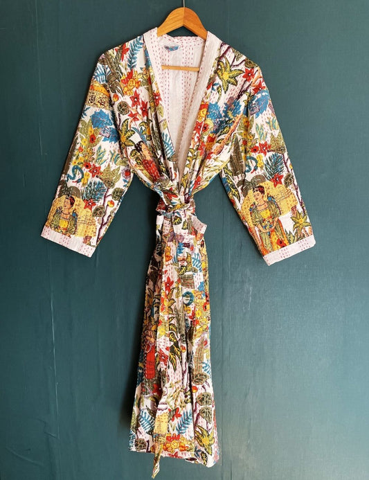 Unisex Classic Cotton Kantha Kimono Robe in Beach Cover Up