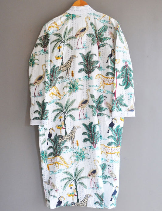 Jungle Print Pure Cotton Night Robes Beautiful White Boho Kimono