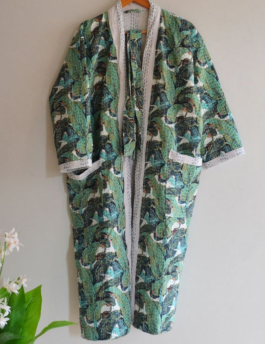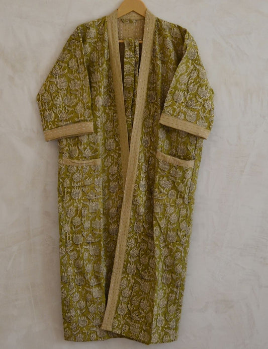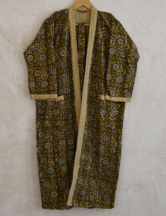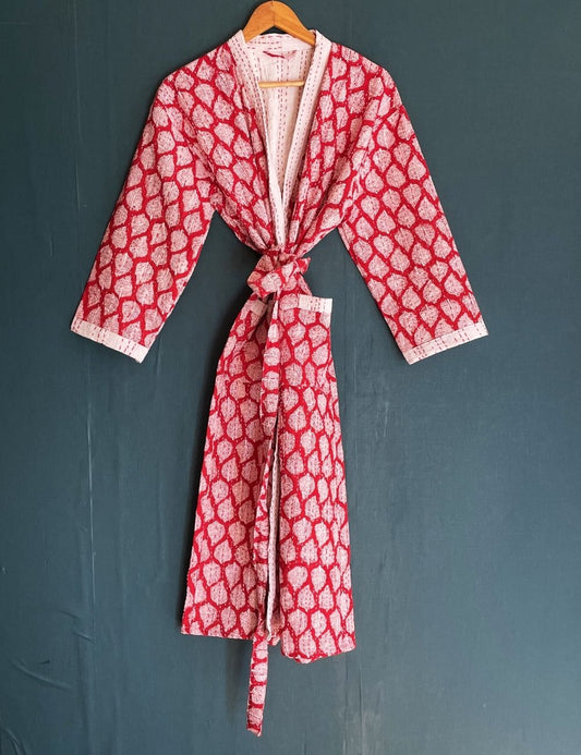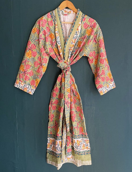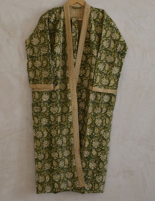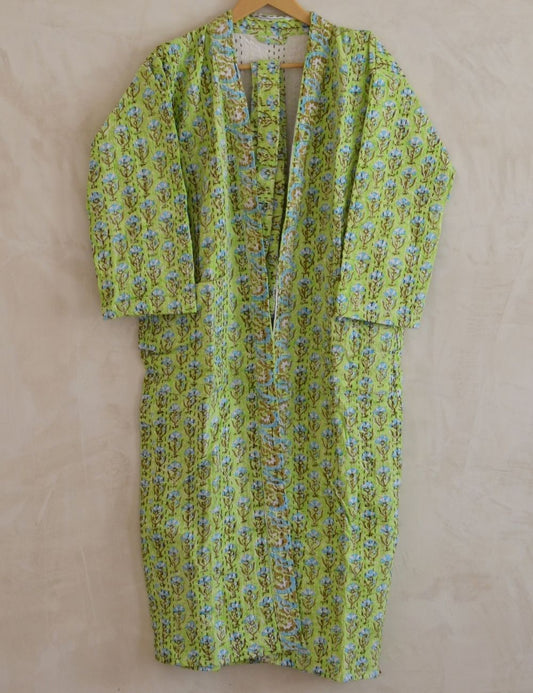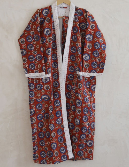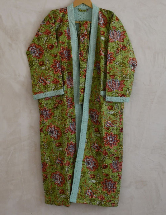Handmade Floral Print Bagru Kantha Quilt Night Robes