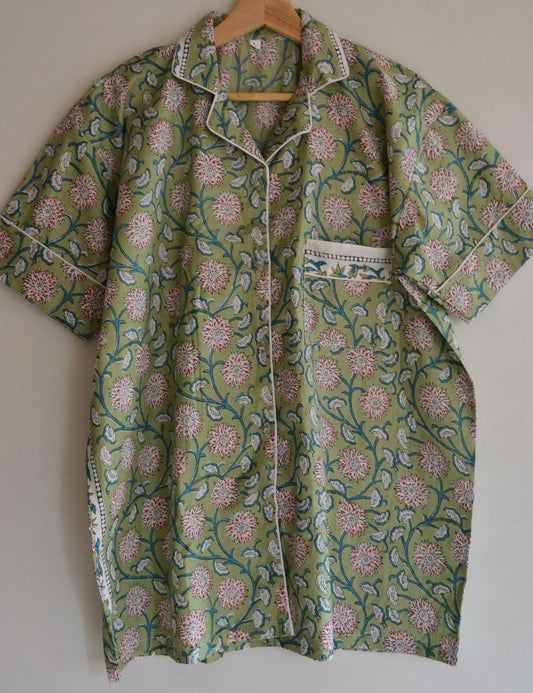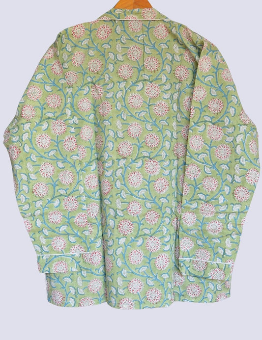 Luxury Indian Jaipur Blockprint Soft Cotton Floral Summer Pyjama Sleep Set