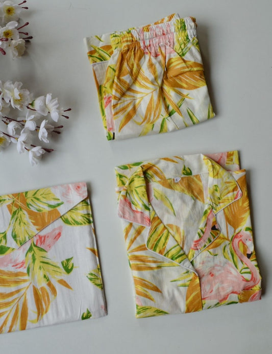 Block Floral Print Bridal Party Wear Night Pajamas Set