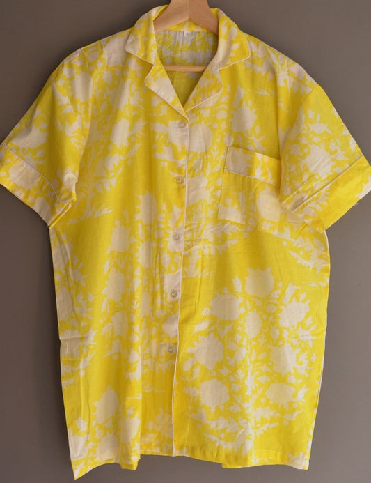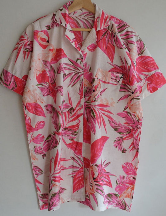 Screen Print Cotton Summer Night Dress For Beach Cover Up
