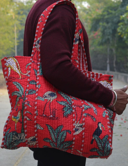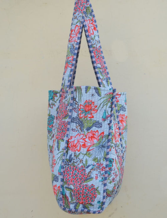 Handmade Quilted Tote Shopping Bag Indian Pure Cotton