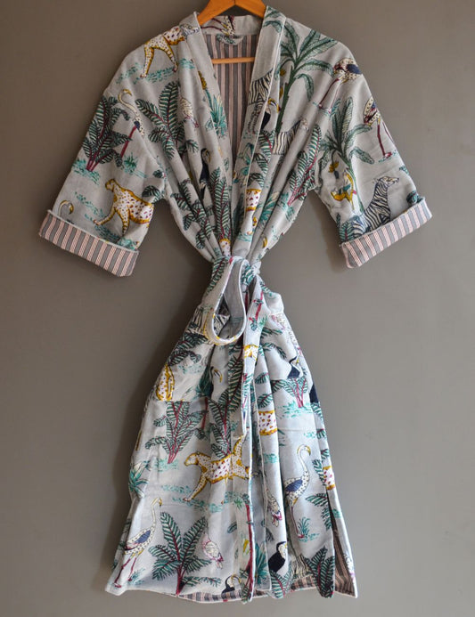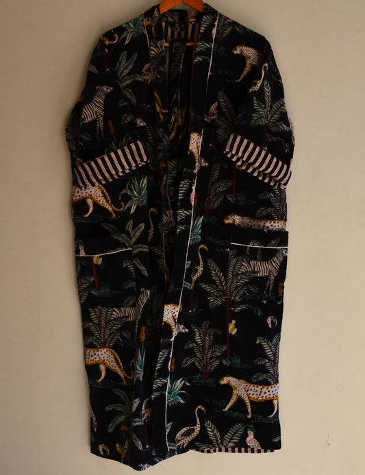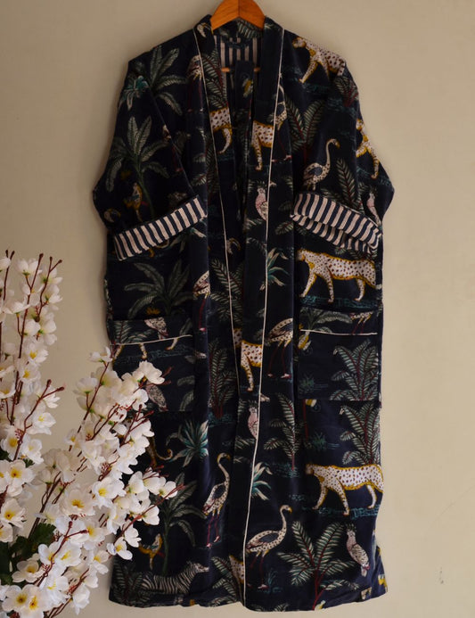 Unisex Long Velvet Robes For Winter Cardigan Jungle Print