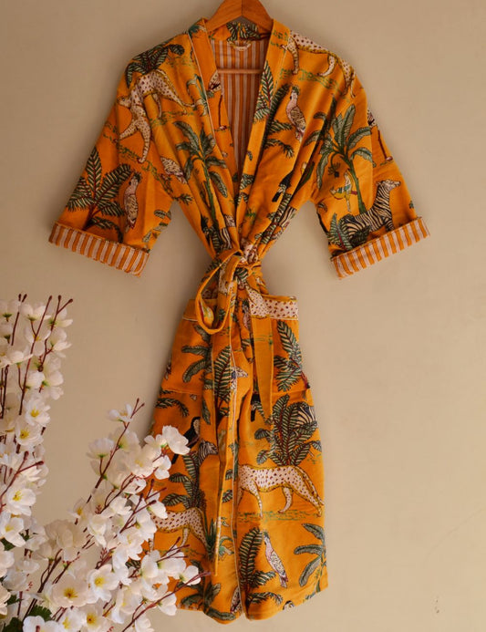 Jungle Print Yellow Velvet Robes Winter Bridal Bathrobes
