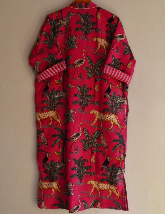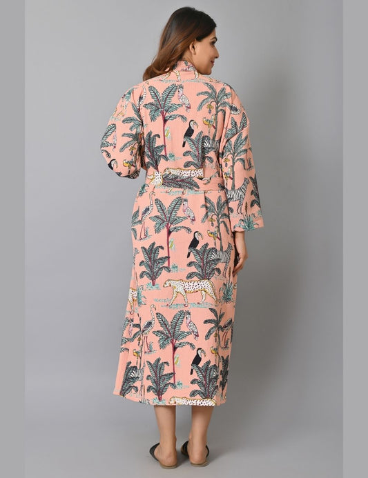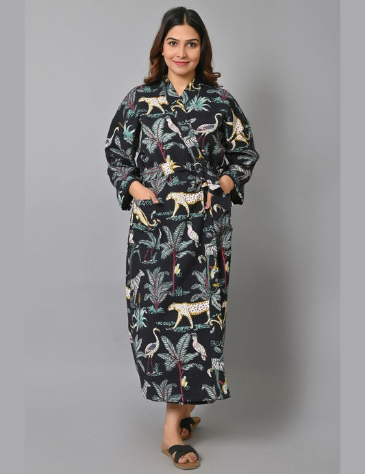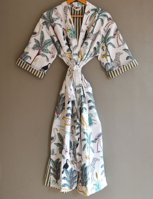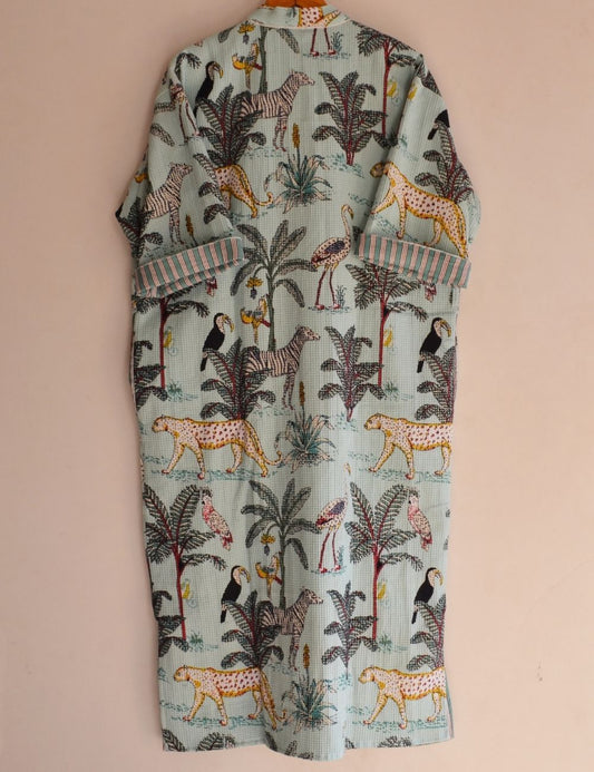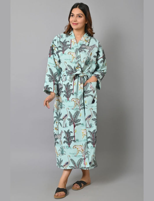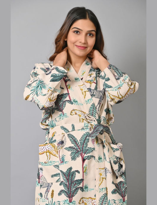 Jungle Print Night Wear Stylish Turkish Waffle Robe