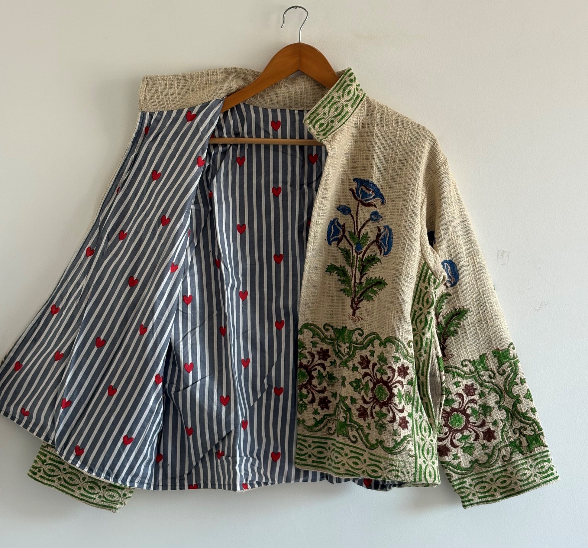 Hand Block Printed TNT Cotton Jacket | Artisan Textured Boho Coat