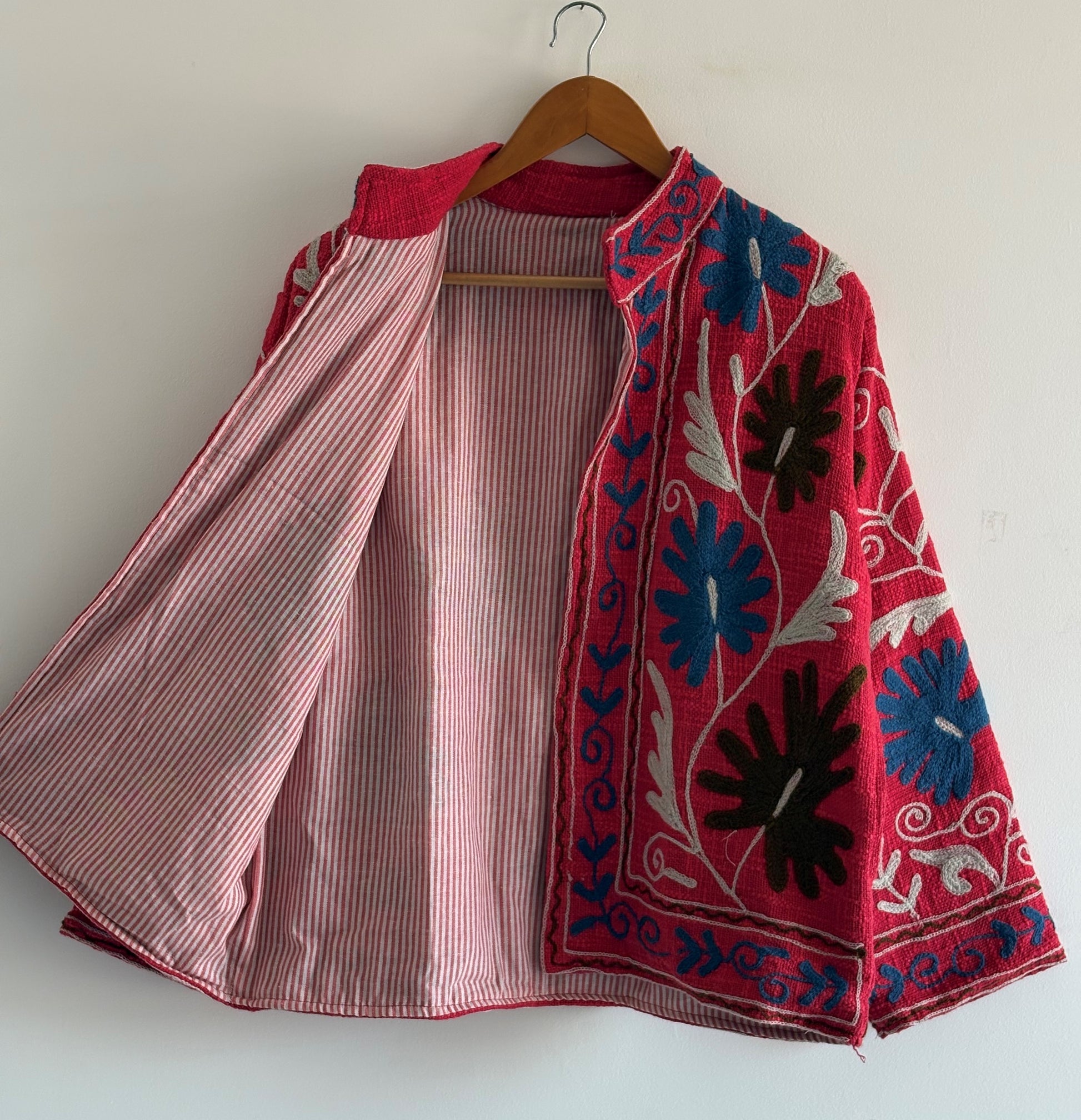 TNT Fabric Suzani Short Jacket | Boho Embroidered Statement Jacket | One-of-a-Kind Vintage Textile Coat