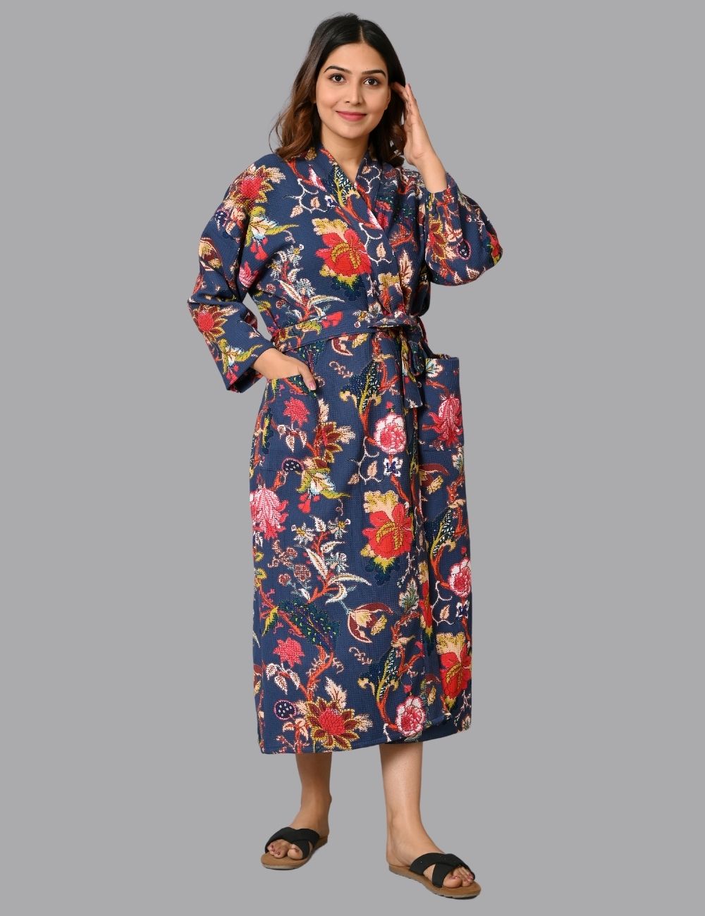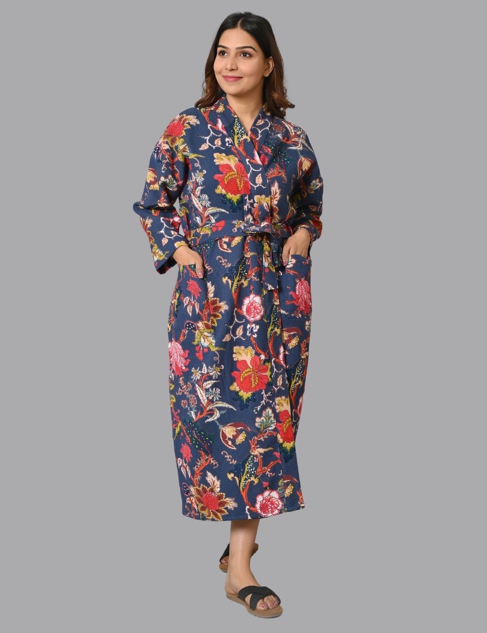 - The Printed Tiger Robe Features 3/4th Sleeves, a Waist Tie and Two Side Pocket.