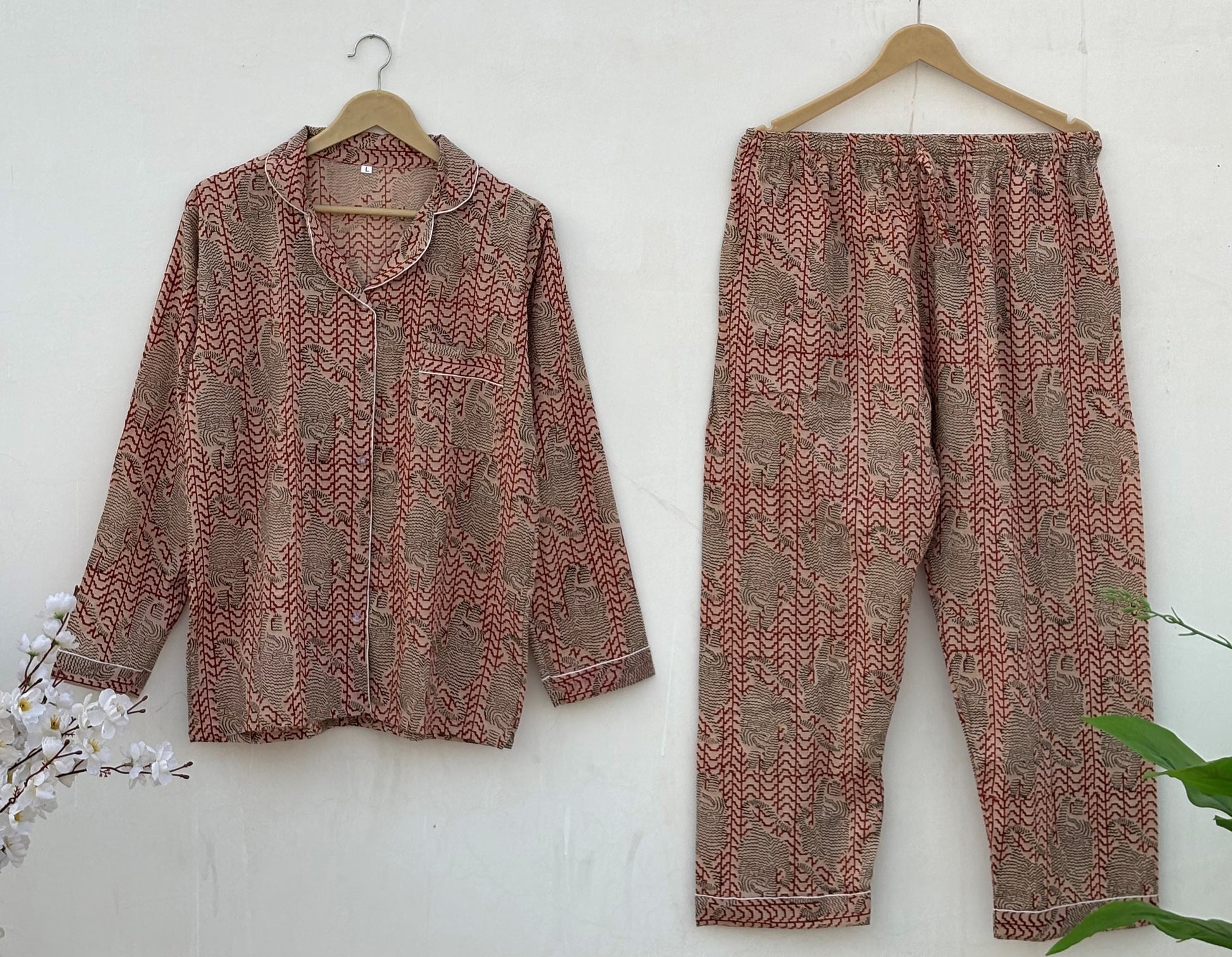 This pajama set is the perfect blend of comfort and style, designed for your cozy nights or relaxed weekends. Made from a light and breathable 100% soft cotton fabric, this set will keep you feeling comfortable all year round.
