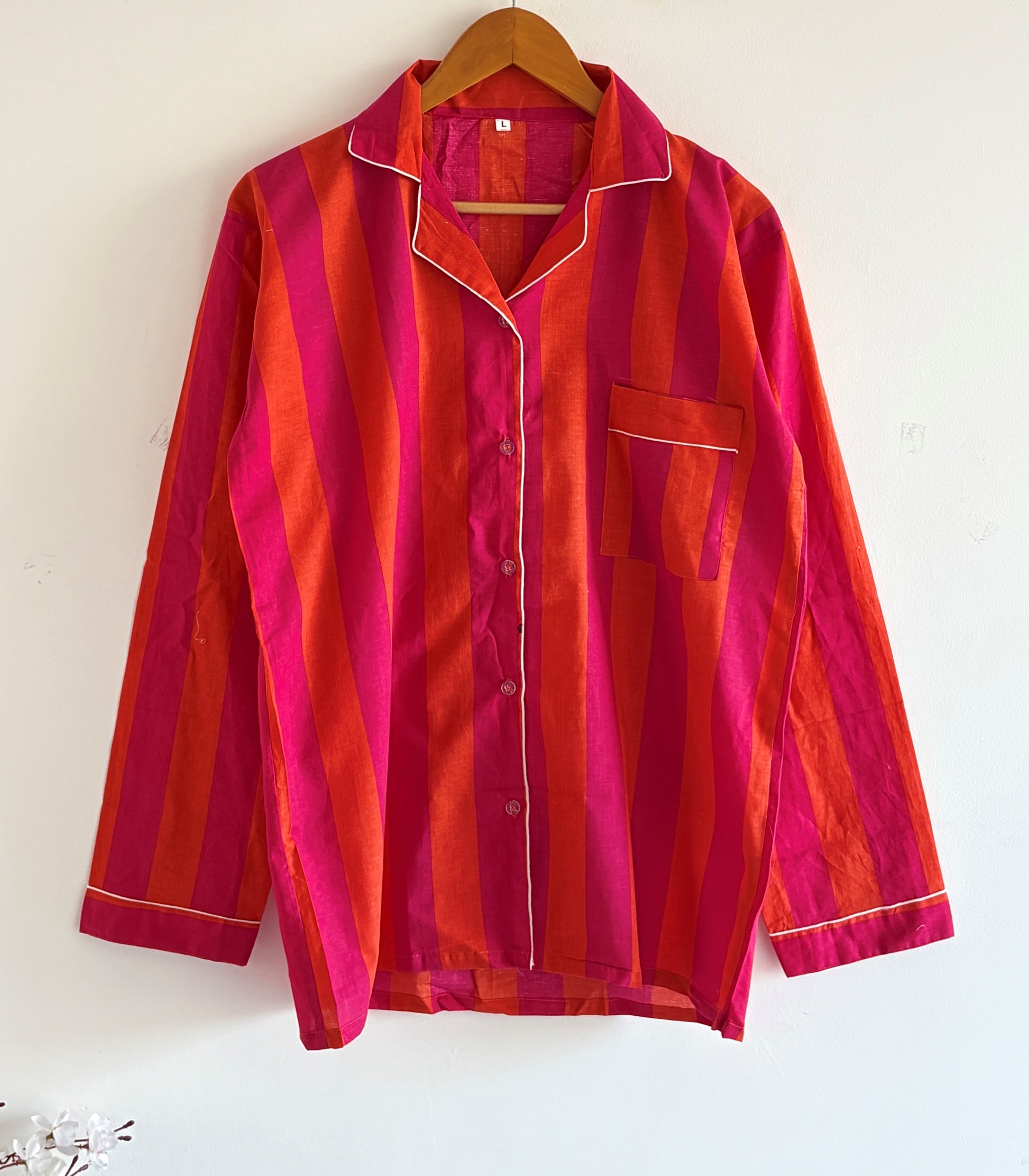 Striped Print Indian Soft Cozy Cotton Night Suit For Women's Summer Sundress Beautiful Pj Set